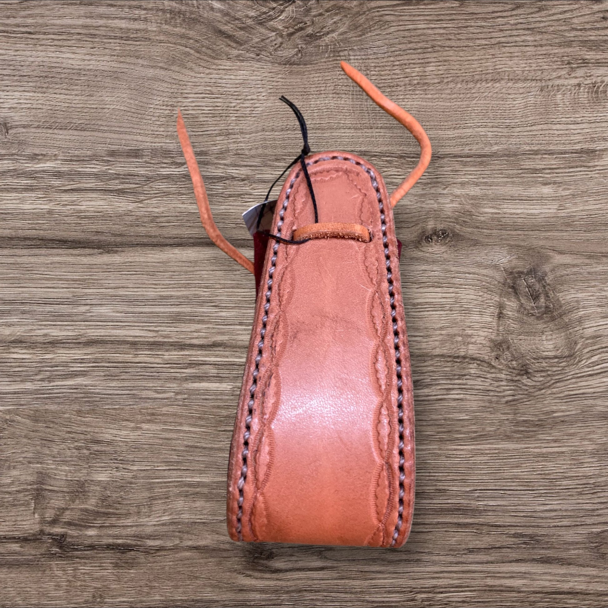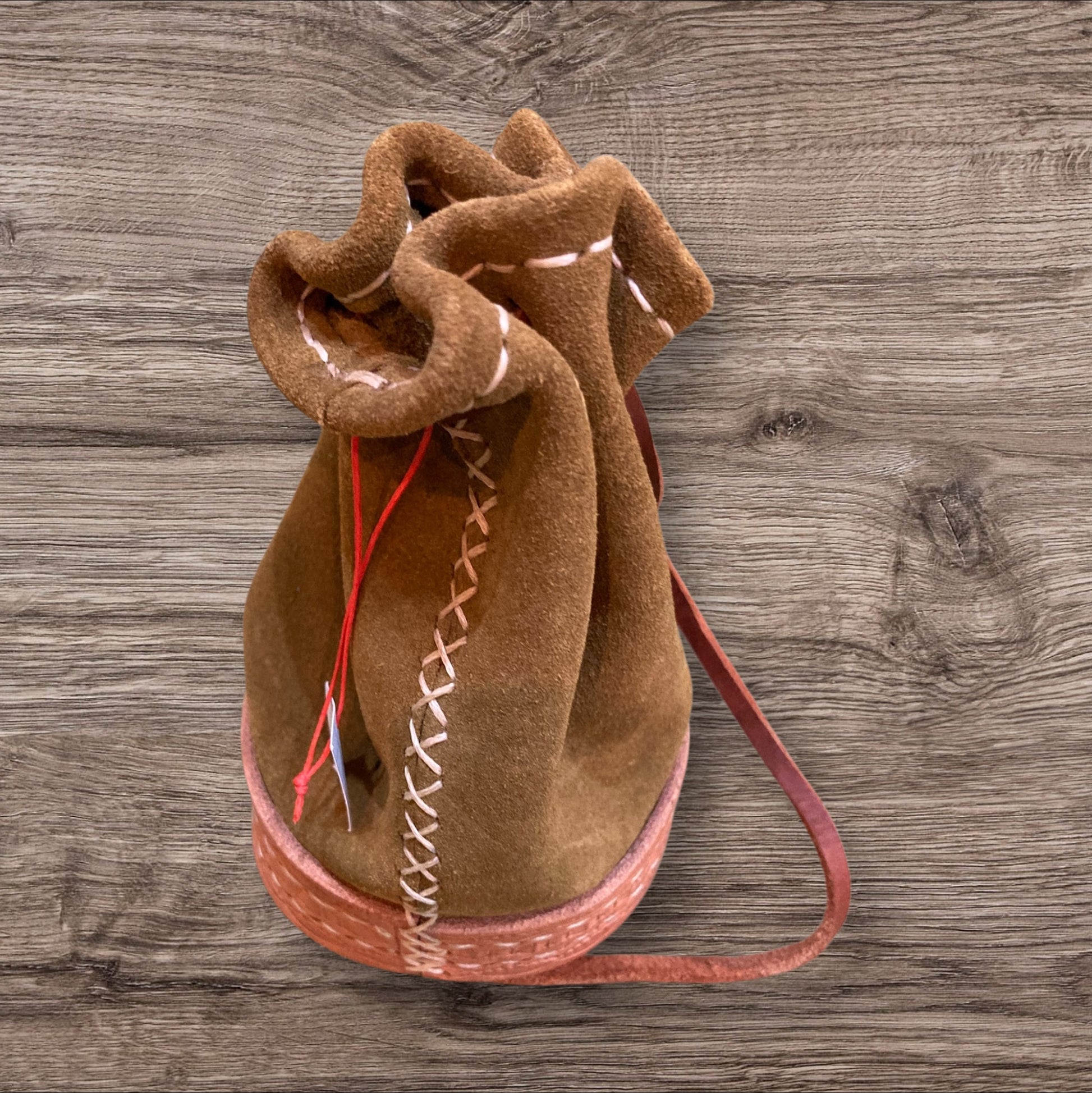 Sobre et élégante, cette longue bourse marron rappelle les bourses de voyage des héros et des chasseurs de légendes.