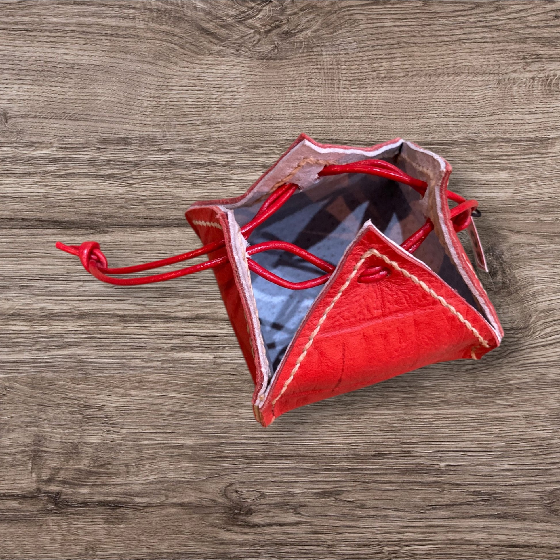 Compacte et raffinée, cette bourse rouge en cuir carré apporte une touche de caractère à tout costume médiéval ou fantasy.